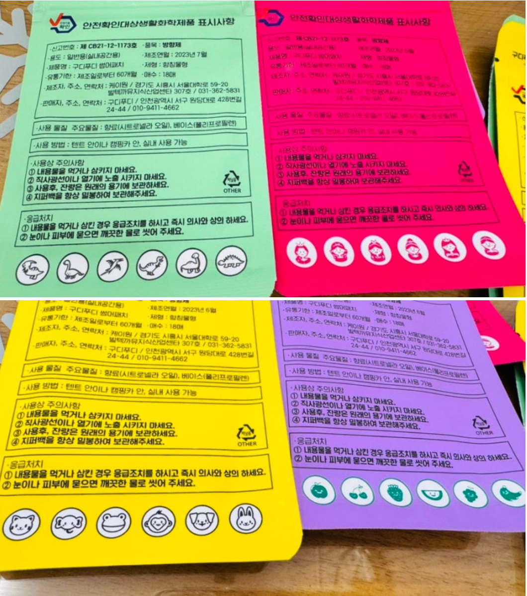 • 주요성분: 시트로넬라 오일(향료), 폴리프로필렌 베이스