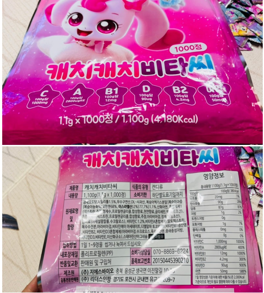 최근 아이 간식 겸 비타민으로 캐치티니핑 캐치캐치비타C 1000정을 구매하게 됐습니다.
