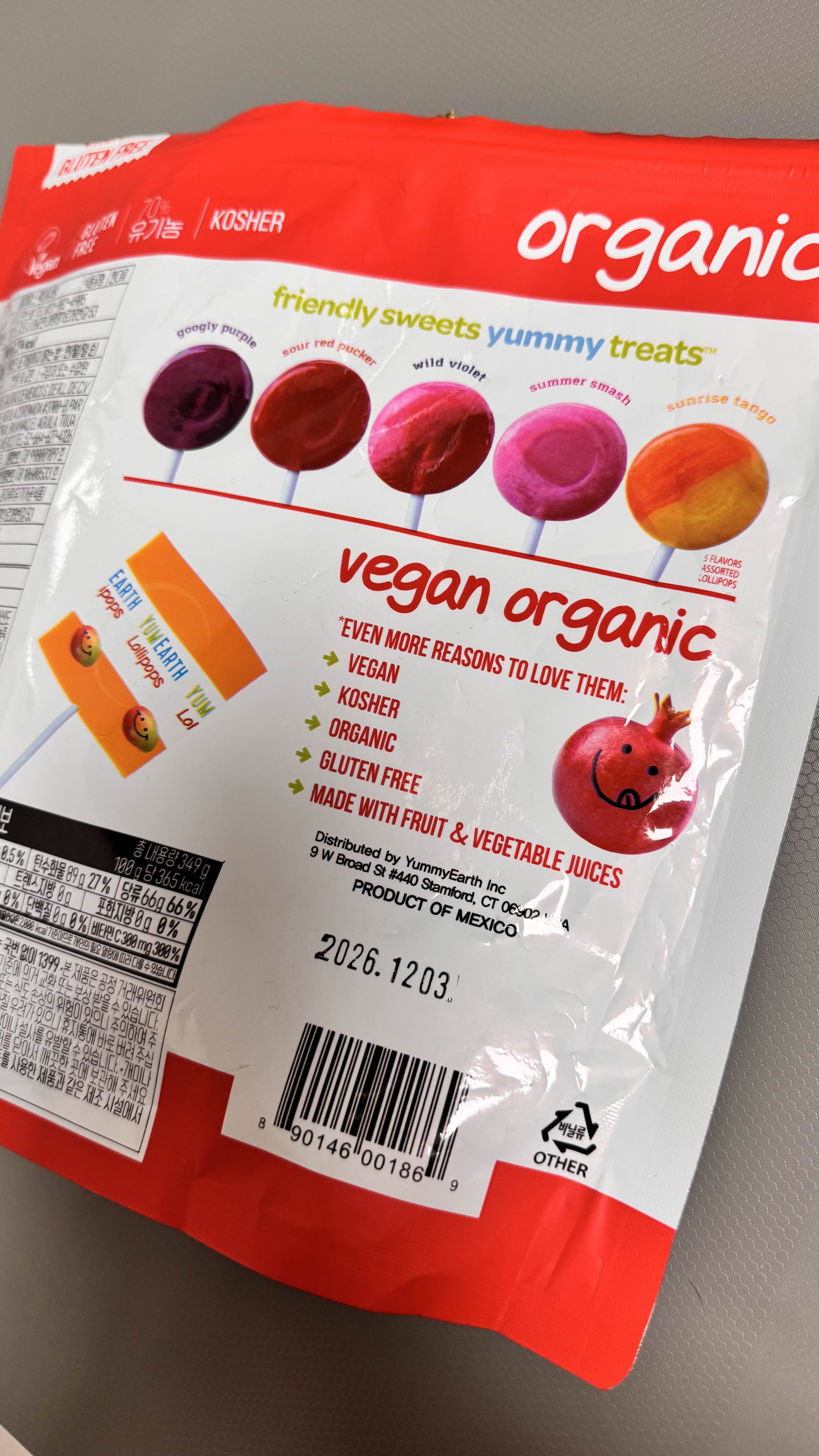 야미얼스(Yummy Earth)는 유기농 재료를 사용한 스낵과 캔디로 유명한 브랜드로, 특히 인공 색소와 향료를 사용하지 않는 것이 특징입니다. 그래서 아이들이 먹기에도 안심할 수 있죠. 야미얼스 막대사탕 패밀리팩은 다양한 과일 맛의 막대사탕이 한꺼번에 들어 있어 가족 모두가 함께 나눠 먹기에 딱 좋은 제품이에요.