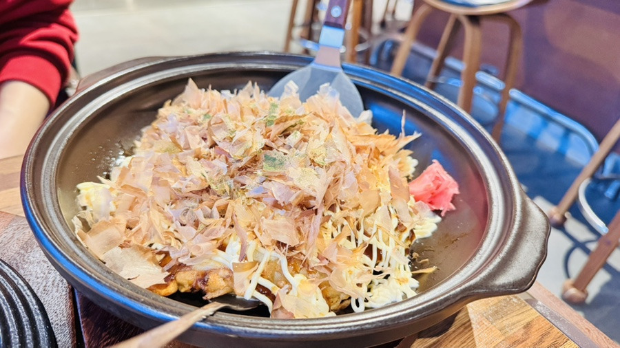 👉 폭신한 식감과 달콤 짭조름한 소스가 조화를 이루는 일본식 부침개. 아이들도 좋아할 만한 맛이라 가족끼리 나눠 먹기 좋았어요.